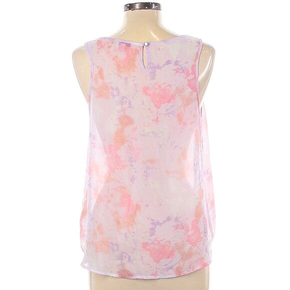 women’s floral blouse, sleeveless top, I Love H81, summer shirt, sheer blouse, lightweight top, scoop neck, pink purple, watercolor print, flowy blouse