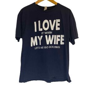 I Love It When My Wife Lets Me Go Golfing T Shirt Unsure of the size of this Shirt but it probably fits as a Mens small or maybe medium Please see measurements below Length 27 Armpit to Armpit 24 Marked sizes will vary by designer. All measurements are approximate and taken flat in inches. To ensure a good fit, please measure a piece in your closet that you would like to fit similarly. If you like the item but dont like the price, make me an offer!