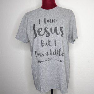 I Love Jesus But I Cuss A Little Graphic Tee Gray