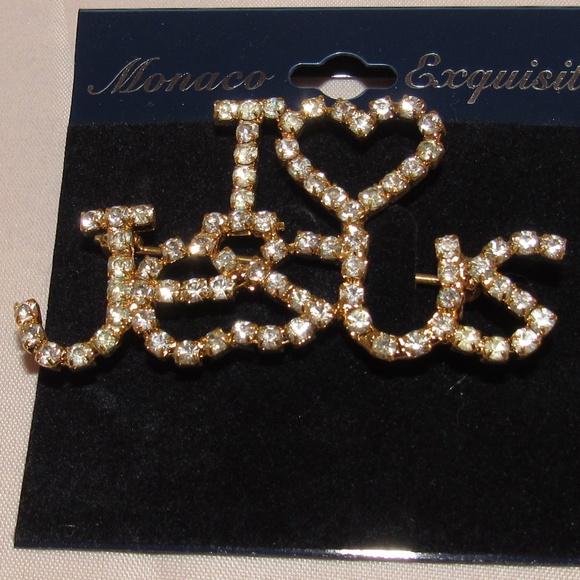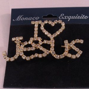 Awesome I Love Jesus brooch. Filled with crystal rhinestones.