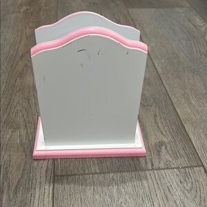Elegant napkin holder in pink and white. Perfect for adding a touch of charm to your table.