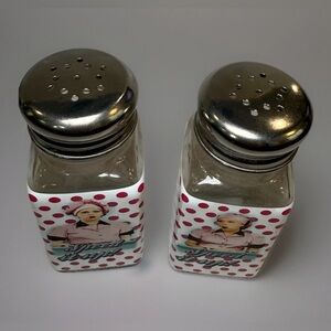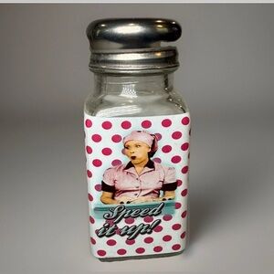 The "I Love Lucy Salt & Pepper Shakers" are a charming collectible set inspired by the iconic TV show. Featuring a classic red color and made of glass, this set includes a pepper shaker and a salt shaker, perfect for adding a touch of nostalgia to any kitchen or dining table. Ideal for fans of the beloved sitcom, these adorable shakers are sure to add a touch of whimsy to meal times. New in Box.