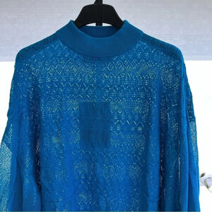 I Love Mr Mittens Lace Balloon Jumper Sweater Hawaiian Blue XS/S Spring Chic NWT