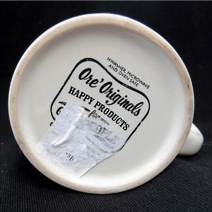 Adorable supreme cat-lovers coffee mug by Ore' Originals (Happy products for good people) that says "I love my cat" within a cat head mortice. Nice beige ivory raised glaze color and darker brown trim. This would make the best gift for anyone who loves their cat (or CATS)!