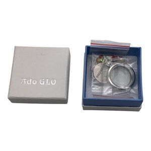 This Ado Glo necklace set features a locket pendant that holds colorful charms, allowing for personalization. It comes in a gift box, making it suitable for gifting. The chain is 21 inches long, providing a comfortable fit.
