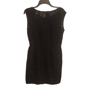 Cute black dress with lace overlay and solid black under. Has belt loop but no belt included.