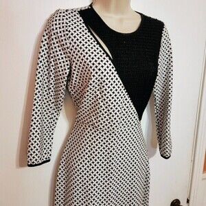 I Love Ronson Black White Printed Knit Midi Dress X Small