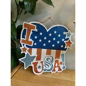 I Love USA sparkly 4th of July sign