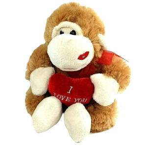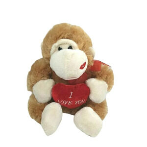 I Love You Heart Stuffed Plush Monkey Toy Red Lips Tan Brown 8" Valentine