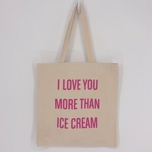 I Love You More Than Ice Cream Canvas Tote in Cream & Hot Pink NWOT!