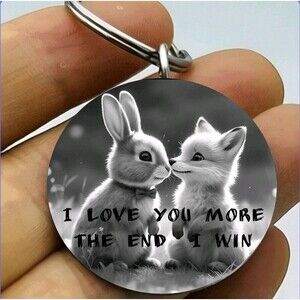 I Love You More The End I Won Rabbit Wolf Hot Cute Animal Stainless Steel Keycha