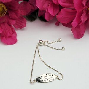 I Love You To The Moon And Back Inspirational Sterling Silver Slider Bracelet