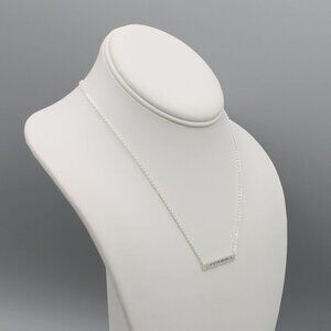 This is a brand new stainless steel necklace with a bar shaped pendant. The approximate measurements of the pendant are: 1-1/4" x 3/16". The chain is cable style with a lobster clasp and it is 15" long plus it has a 2.5" extension. The finished weight of the whole necklace is 3 grams.