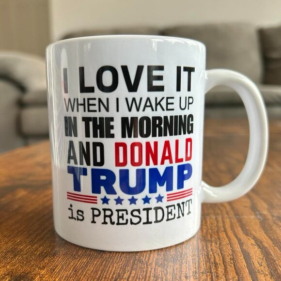 Start your day right with a sip of patriotism! ☕️🇺🇸 This 'I Love It When I Wake Up in the Morning and Donald Trump is President' coffee mug is perfect for true supporters. Bold, durable, and a great conversation starter! These Mugs are Brand New, Never been Used! Grab yours today! Questions? Leave a comment below!
