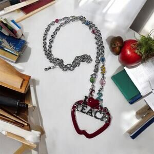 I Love to Teach ID or Glasses Holder Teacher Apple Beaded Accessory Chain NEW