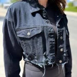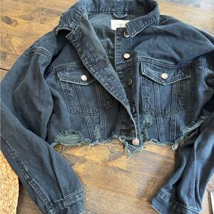 I & M denim black label distressed cropped jacket