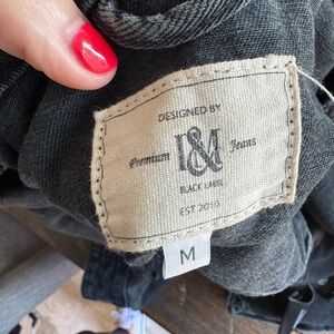 I & M black label distressed cropped washed black denim jacket size Medium