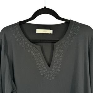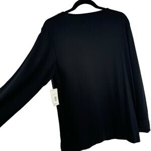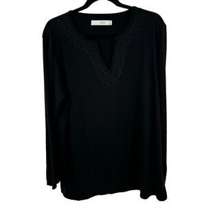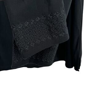 I Magnin 2 Piece Set M Black Long Sleeve Top Elastic Waist Pants Embroidered