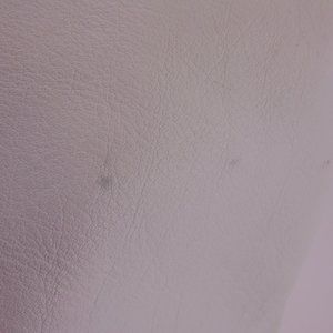 GUC white leather crossbody bag adorned with 4 brushed gold stars has one large open compartment with a zippered pocket. The crossbody strap has a 21" drop. Top zippered closure. There is some ink in the inside zippered pocket and few spots on the bag as indicated in the photos. Please enlarge for a closer look. Approximate measurements: 12.5" wide at top of bag/8" wide on bottom x 10.5" tall x 6.5" deep.