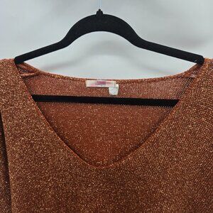 I. Magnin Rust Orange Gold Metallic Vintage 90s V-Neck Vintage Sweater 2x