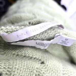 I. Magnin Two Ply Cashmere Weave Knit Scoop Neck Sweater in Apple Green