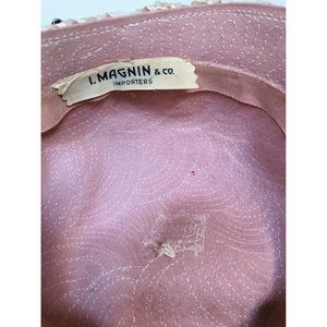 I. Magnin , spectacular true vintage chapeau ! Lovely pale pink hat from the late 40’s, early 50’s according to some research into the company’s labels throughout the years. Beading in excellent condition. As always, if you have any questions don’t hesitate to reach out before purchasing! Enjoy!