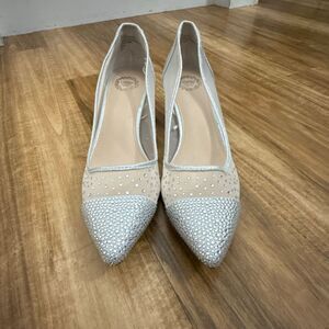 I. Miller Silver Rhinestone Kitten Heels Size 9