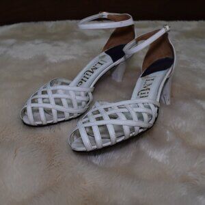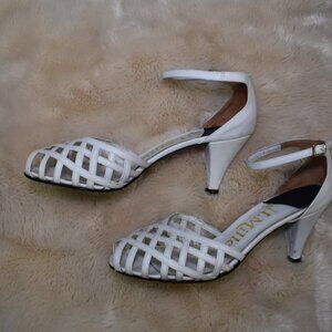 I. Miller Vintage White Leather Cage Pumps Sz 8.5 Ankle Strap Heels Chic