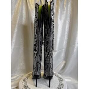 Very fun blingy thigh high boots! Only callout is tip of toe on missing a couple tiny rhinestones. Barely noticeable!