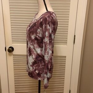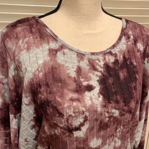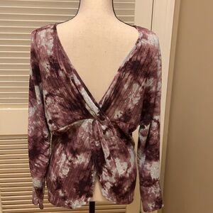I. N. San Francisco Dolman Sleeve Tie-Dye Twist Back Top in Dark Mauve