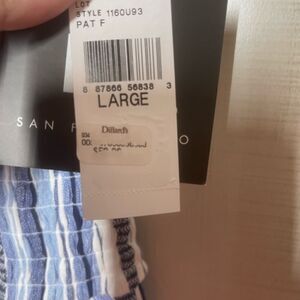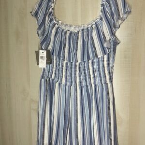 I. N. San Francisco blue and white striped shorts romper, ruffle, size large