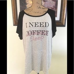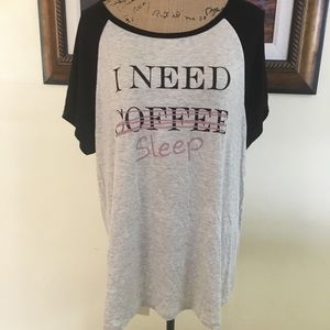 I Need Coffee/Sleep Tee. New with tag. Adorable and soft. Light heather Gray with black. Made in the USA!
