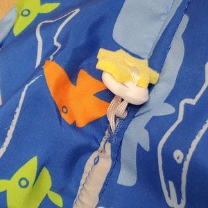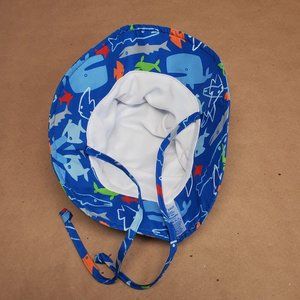 This adorable blue sun hat features a fun fish print and provides the best protection for babies. This hat offers UPF 50+ protection from the sun and has a tie strap for security.