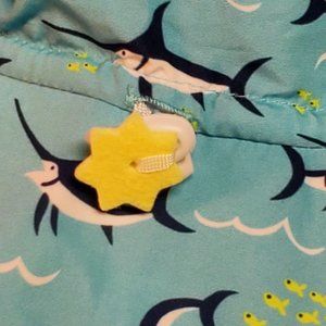 This adorable turquoise sun hat features a fun swordfish print and provides the best protection for babies. This hat offers UPF 50+ protection from the sun and has a tie strap for security.