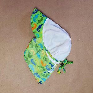 This adorable green sun hat features a cute alligator print and provides the best protection. This hat offers UPF 50+ protection from the sun and has a tie strap for security.