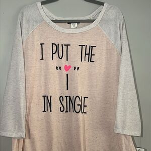 I Put the I in Single three-quarter sleeve graphic top size 1X