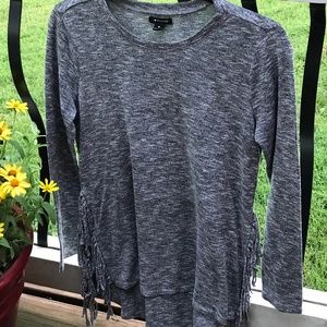 I 🖤 RONSON Merled Heather Gray Fringe Sweater | M