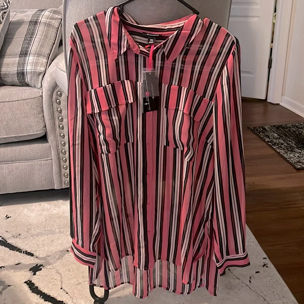 Pink, white and black casual work shirt for the office size 2X brand new with the tags still on