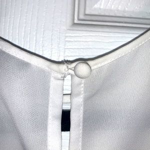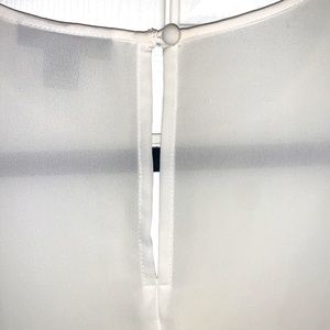 Features: flutter sleeve, ruffle sleeve, cutout front, button at beach in back