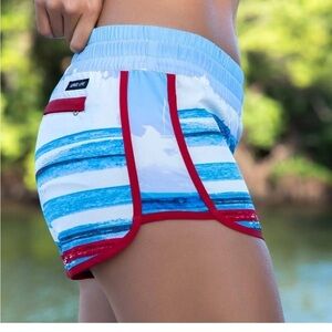 I Salute 5”H2O side tie ladies board shorts w/water activated patterns Sz-M A7