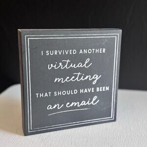 I Survived a Virtual Meeting Home Workspace wooden Sign
