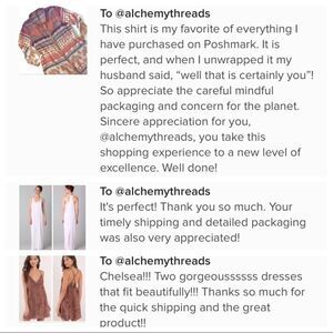 I have been buying and selling on Poshmark since 2013. I am a suggested user and Posh Ambassador with a perfect 5.0 star rating & have many repeat shoppers.