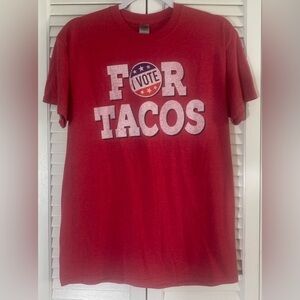 I VOTE FOR TACOS Tshirt, Size M, pit to pit 20”, shoulder to hem 27.5”