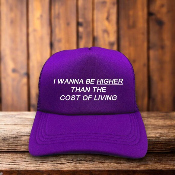 I Wanna Be Higher Than The Cost Of Living Unisex Trucker Hat Purple Democrat Cap