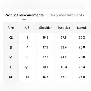 Black T-shirt in super soft polyester. See pictures for sizing on the L and XL. I currently have both sizes.