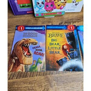 I Can Read -Step 1 - The GOod Dinosaur, Step 1: Big Bear, Little Bear, I can Read Adventures of The Berenstain Bears. Step into REading - Frozen Story Collection. Shopkins Phonic books/workbook - 8 books present. Peppa Pig 5 minute stories (includes 8 stories).