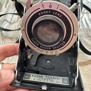 Kodak Tourist camera with Kodet lens. Features Flash Kodon shutter.