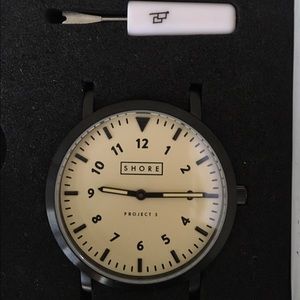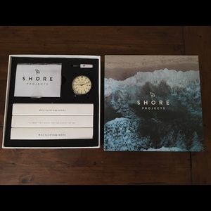 SHORE PROJECTS 'Project 3' Round Watch Leather & Mesh Strap Box Set. Never worn. Vintage inspired round watch with multiple strap options: flexible metallic mesh, rich leather, and black silicone. 39mm case, 20 mm band width, deploying clasp or buckle closure, 2 hand quartz movement, water resistant to 10 ATM (100 meters), sapphire crystal face.