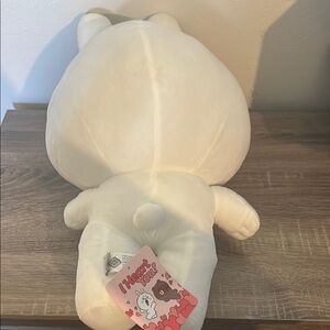 Adorable white bunny plush with pink ears and cheeks. Features a red heart detail.