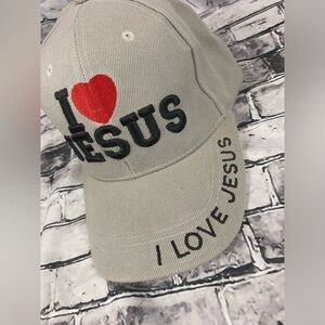 I love Jesus Christian Tan Hook & Loop Back Strap Size Adjustable Baseball Hat